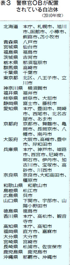 私たちが懸念しているもう1つの問題は、生活保護への締め付けがすすんでいることです。今年3月、厚労省は福祉事務所に警察官OBを置くよう指示を出しました(表3)。その人件費も厚労省が出します。取り締まりを職務としていた人は福祉の現場にはそぐわない。また、自治体によっては市民に不正受給の告発を呼びかけ、専用電話を設置したところもあります。
