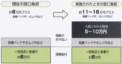 その一つが、六カ月を超える長期入院患者の入院費用。外来で受けるのと同じ治療は保険でみるが、それ以外の費用は保険からはずし患者負担にする、というのです。