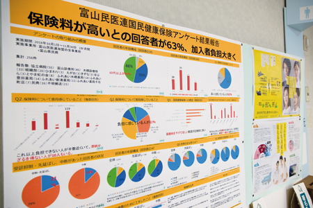 富山民医連は国保アンケートの結果を各事業所に貼り出し、職員と患者に情報発信している。富山協立病院で