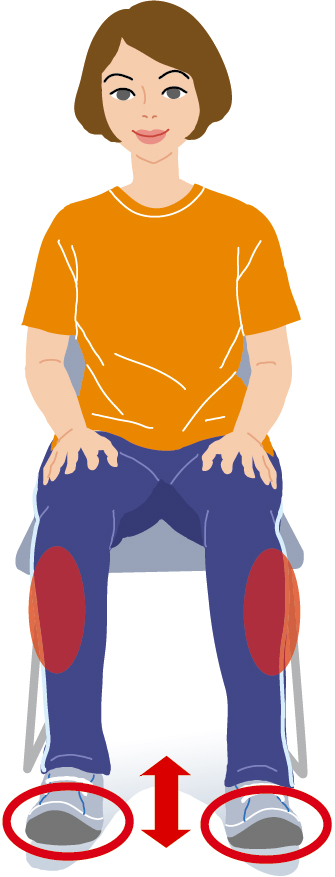 (2)両足のかかとを「1・2」で上げ、「3・4」で下げる(5~10回繰り返す)。
