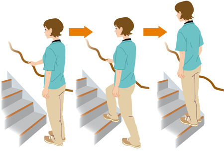 ・転倒防止のため、手すりもしくは壁の近くで行う