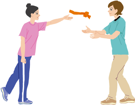 タオルの片側の端を玉になるように結び、それを投げ合う。