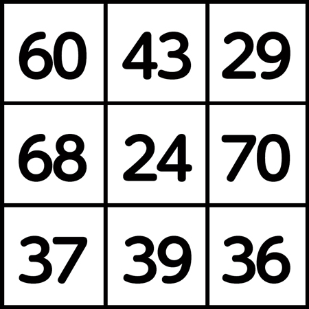 次の9個の数字の中から、合計が100になる数字3個を選んでください。