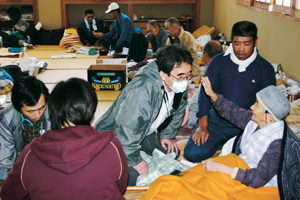 “At nine in the next morning after the earthquakes occurred, we started to drive our cars from our Saitama Hospital, located near Tokyo, to Nagaoka city, loading with a lot of emergency food and medical materials we have stocked. On the way, we saw several unordinary scenes such as naked roads destroyed and sunk by temblors, and broken signals on the corner of the streets. Fortunately, Nagaoka clinic was not ruined and their basic functions such as electricity, potable water and telephone line were alive. There was already over 60 evacuees settled in the clinic and the attached the aged person’s residence. We entered the communities destroyed the next day with other counterparts from Min-iren. We walk around the neighborhoods to recommend for residents and evacuees who lack food and care, to come to our clinic”.