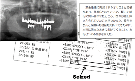 One of my interviewees said he lived on only one bowl of rice porridge a day. He is in his 60s and used to work as an engineer . In the past, he earned a decent income and used to receive dental treatment regularly, as observed by an X-ray image of his teeth taken at our clinic. However, he lost his income in the wake of the severe economic downturn, and became impoverished. His payment of the National Health Insurance tax was in arrears. Pressing for payment from the national health insurance office grew more and more intense, and finally, what little amount left in his bank account was seized by the office.