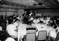 そうはいってもなかなかつどいまでに納得のいく活動に結び付けられなかったみなさんも気兼ねなく企画に参加していただき、元気を出してもらえるのです。 全国からさまざまな活動が報告されます。それらを見ていただくことにより、こういう活動なら僕にもできる、私たちもやってみたい、という何かを見いだして いただけると思うためです。《奨学生活動の魅力をつかんでいただきたい》 つどいまでの各大学での活動や活動交流を通して、参加者のみなさんが奨学生活動 の魅力をつかんでいただきたいと願っています。その入り口はみなさんひとりひとりによって様々ではありますが、出口はやがてひとつに集約されてくるのでは ないかと強く信じています。