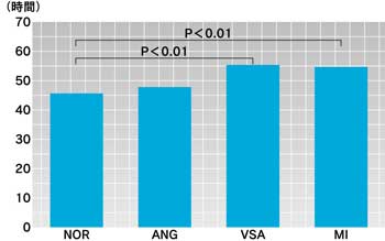 Kさんは45歳で鹿児島市の建設資材メーカーに勤務しておられた方です。目の不自由な奥さんを抱えておられ、奥さんの実家の近くから、職場のある鹿児島市 内まで1時間近くかかって毎日通勤をされていました。最近の不景気で業務の配転と人員の削減の続く中、最近課長に昇任したKさんはとにかく人を働かせる前 にまず自分が頑張らなくてはと、連日夜9時過ぎまで働きづめに働く毎日でした。特に年度末の決算需要も重なったこともあり、注文主より納期を早めるように 迫られるなどして、入院してこられる1ヵ月前は、後で調べてみると計352時間も働いていた事が判明しました。又、以前から高血圧を検診で指摘されていた のですが、病院へも3年前に数回通ったのみで、とても自分の体のことを気遣う余裕がなかったといっていました。昨年末より、しばしば早朝の胸部絞約感が起 こるようになったもののそのままにしていたとのことです。やっと、仕事が一区切りしほっとしていた今年のお正月、自宅での食事中に激しい1時間以上続く胸 痛があり、私たちの病院に来院されています。病歴や心電図、心エコー所見より不安定狭心症と診断され、一時房室ブロックも起こしたものの、何とかその後安 定、冠動脈造影にて左右両方の冠動脈で強いスパズムがあり冠攣縮狭心症と診断されています。Kさんに後で伺うと、病院へ救急搬送され入院したときは、胸痛 や不安感もあったものの”これでやっとしばらく休める“とほっとした気持ちもあったとのことでした。まさに働き過ぎにより命を落とし“過労死”になろうと した方といえます。
