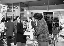 | 二月一四日、阪急東向日駅近くのスーパー前で、バレンタインチョコ付き「あなたの思いを聞かせて下さい」ハガキ五百枚を配りながら、医療費の値上げ反対署名を呼びかけました。 医師、職員、組合員ら二一人が参加、短い時間に署名は五〇を超えました。買い物の主婦や高校生らも「何とかしてもらわんと」と署名に応じてくれました。 (清原巳治通信員) |