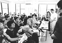 | 七月二九日、医療・福祉活動交流集会を開き、職員五八人、友の会三三人、患者会など八人が参加し、一〇演題の報告を受けました。 友の会ボランティア「たんぽぽ」さんの協力で、患者食の内容の充実にとりくむ栄養科の努力に感動。また「私たち透析患者は毎日命がけで生きています。透 析治療をお金の心配なく安心して受けられるために腎友会としてみなさんとともにがんばりたい」という患者会「そらまめ」会長の報告もありました。 (本田昌也通信員) |