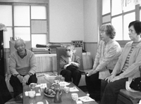 北海道勤医協苫小牧友の会から一四人が函館にこられ、一〇月七日「絆の家」参加者と昼食をはさんで交流しました。玄米にぎにぎ体操から小物づくり・おしゃべりで時間があっという間にすぎました。食事作りボランティアの大奮闘でいつものおいしい昼食でした。 その後、苫小牧友の会から「のびのびとくつろぐ利用者や、ボランティアに感動しました。こうした活動の積み重ねが市民権を得て、評価につながっているの ですね」といううれしい便りがきました。 (大田夏美) |