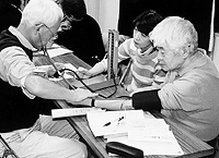 足立健康友の会で血圧測定講座が開かれました。 じつは、第二七期保健学校で、管理栄養士、薬剤師、医師を講師に全五課を修了しましたが「自分では何もできない」という声も。 そこで「卒業生が血圧を測れると班会も楽しくなるのでは」と病院側に追加講師を依頼。こころよく引き受けてもらってオプション企画として血圧測定講座の開催になったものです。 三五人の卒業生のうち一六人が参加。看護師六人と研修医からひとりひとりが指導を受けました。 今後、班会などでの活躍が期待されます。 (柏葉長一) |