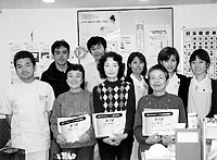 歯科が行なっているユニークな「歯みがきセミプロ講座」がことしも終了しました。 全四コースに出席した三人が歯科スタッフと記念写真。歯みがき資料ファイルと終了証を記念に贈られ「あらためて歯みがきの大切さを実感した」「上手にみ がくテクニックも習得できた」「孫に伝えて、子どものときから習慣化しよう」と話していました。 (加藤節子通信員) |