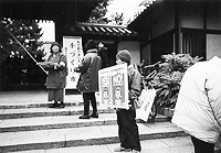 | 第三八回「紀元節復活・軍国主義復活・靖国神社法案反対函館市民集会」を、二月一一日、函館市内で開き、約二百人の市民が参加しました。 シンガー・ソングライターの横井久美子さんが歌と語りで、平和の大切さ、命の尊さを訴えました。芦別事件の無罪を訴え続けた被告の妻をうたった「飯場女 の歌」では、涙をうかべて聞き入る人もいました。 横井さんは、「東京でイラク派兵反対集会に参加したとき、往復の電車でも自衛隊進入禁止の標識を書いたマスクをつけたまま、アピールした」と話し、一人 ひとりができるところから行動を起こそうと呼びかけました。 (大田正春) |
