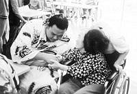 八つの院所友の会で分担することになり、私たちの友の会も一七〇〇枚を受け持ちました。参加者も徐々に増え、病院の友の会コーナーで折っている人もいま す。引き続いて台紙に貼ったり、リボンをつけたりの作業になりますが、全国から参加されるかたがたに少しでも喜んでもらえればと、猛暑の中、励んでいま す。