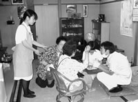 | 毎月一回健康チェックをしているコープ高田から「共済のキャンペーンをするので健康チェックをしてほしい」という要請を受け、行ないました。 この日は、いつもの血圧・体脂肪・骨密度の測定に加えて血糖値測定もしました。一年目の研修医をはじめ、薬剤師の実習生や看護師などが参加。列ができる ほどの盛況ぶりで、二日間で約一〇〇人の測定を行ないました。 とくに血糖値測定は大人気で、ご夫婦で測定された方は「あまり測る機会がないのでよかった」「初めて測って少し高かったので気になる」などの感想も寄せられていました。 (馬場千恵子通信員) |