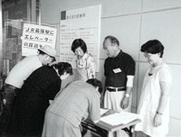| 二〇年前、働くものの大きな期待を担って 開院した札幌西区病院。医療改悪法案が通り、一病棟休止という苦渋の選択を迫られ、その論議の最中に記念祝賀会を開催しました。二〇周年を記念して「一万 人の友の会を」と、友の会員・職員が一体となってがんばり、記念式典の始まる二時間前に「健診にきた方が入会しました」という健診課長の弾んだ声。一万人 達成です。 記念講演で阿部昭一民医連元会長は「働くものの医療機関としての責任と自覚を持った職員、共同組織、地域の支持、協力があったからこそ今があるのだ」と。三〇年目指して歩みを始めます。 (坂野悠紀子通信員) |