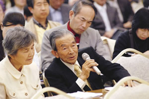 | 미에켄에서 달려온 오가와 씨. 전 731부대원으로서 <부정은 사회에 보이지 않으면 안된다>고 한다 |