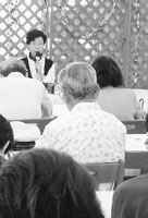 国会で「改憲手続法」が成立したことを受け、当会は、今後の運動をどう展開するかをテーマに、「平和ミニ講座」パートIを開きました。四四人が参加。「B 級戦犯」の遺児である吉川夏見さんに、不当に処刑されたお父さんのことを話していただきました。お父さんは通訳として海外に派遣され、本人の同意もなく前 線へ動員されました。そして敗戦、フィリピンの捕虜虐殺事件に関与したとされ、異国で無念の死を遂げたそうです。