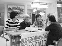 仲間増やしといえば、以前は地域訪問や友人、知人へのはたらきかけといった地道な作業でしたが、二年前からは、病院の待合室に加入コーナーを設け、加入 されていない患者様に積極的に声かけしています。職員と組合員が一緒に座り、午前一〇時から昼過ぎくらいまで毎日おこなっています。