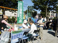 恒例の青空健康チェックを地域まつりとあわせておこないました。一〇月に入りようやくよい天気にめぐまれ、まぶしい日光の下、血圧・体脂肪測定を実施しました。