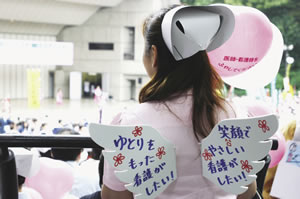 “자신들이 편하기 위해서 증원을 원하는 게 아니었다. 간호사가 늘어나면, 환자분들을 위해 많은 것들을 할 수 있고, 그것은 또한 간호의 빛을 말할 수 있는 길도 된다. 운동을 통해 자신이 하고 싶은 간호에 대해 말하는 것, 그것은 바쁜 가운데 거의 잃어가고만 있던 보람을 되돌릴 수 있는 것으로 이어진다, 그래서 하면 할수록 힘이 난다.” 간호개선 대운동추진본부의 야마모토 교코 본부장의 말이다.