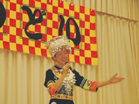 一月二〇日、長崎健康友の会は「新春のつどい」を開き、一七五人の参加で盛り上がりました。特別出演は太極拳演技と、中国からの若い女性留学生・廖明智さ んでした。彼女はアルバイトをしながら長崎大学大学院で音楽を学んでいます。廖さんは民族衣装で登場。参加者は彼女のひょうたん笛にびっくり、歌もすばら しい声で、みんなうっとりでした。