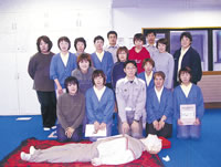 私たち“ゆいっこ”のヘルパーは、昨年一一月に普通救命講習会で修了証をいただきました。「仕事をする上で救命技能を高めた方がいいのではないか」 と受 講し、皆汗だくで心臓マッサージ、人工呼吸、AED(心臓電気ショック機械)の使い方、止血、誤飲時の対処法などダミー人形を使っておこないました。