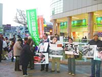 「3・1ビキニデー」に参加した友の会役員さん・会長が寒さをものともせず、北千住駅頭の仕事帰りの人に、一時間がんばりました。