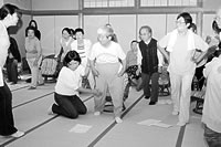 当日は、小規模多機能介護施設「ひまわりの家」の皆さんも加わり、総勢二七人が参加。軽いストレッチ体操と「後期高齢者医療制度」の現状などを学習し、 和やかなひと時を過しました。今後は楽しい内容も取り入れながら、定期に開きたいねと話し合いました。