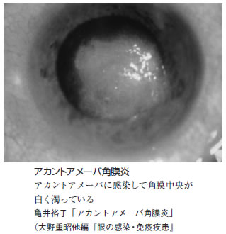 とくに治療困難な「アカントアメーバ角膜炎」が急増したことは、コンタクトレンズの手入れ方法のさまがわりが深く関わっていると心配されています。アカントアメーバは土や水道水、ほこりの中などどこにでもいるアメーバです。