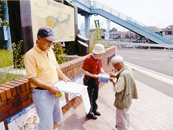九月一四日に福生市敬老大会が開かれました。友の会は、年金者組合員と生活と健康を守る会員に協力を呼びかけ、八人で「後期高齢者医療制度の廃止」「介護保険の見直し」について、宣伝・署名行動をしました。