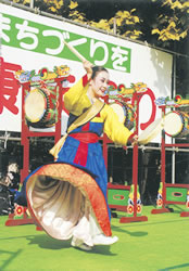 中央舞台には、サークルの日ごろの活動、実践内容のお披露目、メインには金一志韓国伝統芸術院の韓国古典舞踊が華やかに舞台一杯に踊り、観劇者全員大喜び。