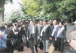 原告の二人は、新基準ですでに認定されており、残り二人の原告は肝硬変、脳梗塞後遺症などの病名で、認定が心配されていました。原告の高田さんは「今ま でがんばってきてよかった、力強い支援があってこそ」と語りました。