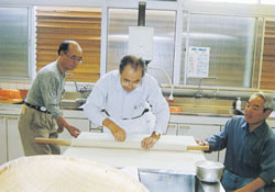 一〇月四日、支部主催で「そば打ち体験教室」をおこないました。二六人が参加。指導はJR富山駅前で長い間評判の「つるや」店主・山崎信雄さん。