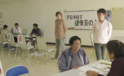 私たちの友の会は毎年校下公民館が主催する「文化祭」に健康チェックコーナーを設置しています。このとりくみを始めて六年になりますが、今では、午前中で 六〇~八〇人がチェックにこられます。内容は血圧・体脂肪・握力など基本的なものですが、結果をみてすぐアドバイスができるよう医師も参加しています。