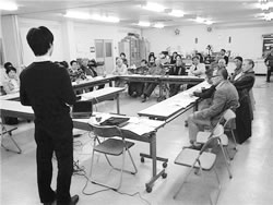 新しい販売所からは、配達員への援助金のこと、配達・集金の工夫などの質問が。また、最近開設したばかりの販売所は、「みんなのために役立っていることがうれしい」と。