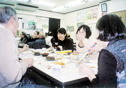 東葛看護学校の学生が、友の会の「ひだまり班会」で一緒に食事をとり、ひとり暮らしの人たちと歓談しました。緊張しつつ患者の声に耳を傾ける姿に未来の看護師の顔が浮かんできました。