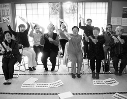 買い物途中で教えあったりして練習のたびに仲間も増え、今では総勢一六人で楽しんでいます。