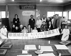四月一〇日、これまで班がなかった倉永支部に悲願の新班が結成されました。結成会をおこなった公民館には、会員のほか、公民館を練習場にしているフラダン スの会の人たちも参加して、にぎやかな集まりに。最初に健康チェック、つづいて支部長があいさつと結成に至るまでを語り、みさき病院事務長が未入会者に入 会を訴えました。