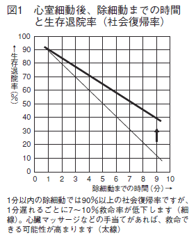 また、2007年に一般市民が目撃した心肺機能停止傷病者のうち、市民による応急処置がされなかったときの一カ月後の社会復帰率は4・4%です。応急処置があった場合は7・9%ですが、さらにAEDが実施されたときは実に35・5%と、大きな成果をあげています。