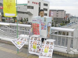 07年5月、国民投票法強行など改憲攻撃が高まる中で、土庫病院の職員を中心に、地域の方とともに憲法九条を守ろう! 核兵器を廃絶しよう! と平和のアピールを開始、2年間、継続してきました。毎週おこない、100回を達成。