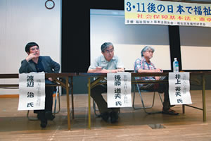 심포지움에서는 지진 참사로 더욱 현저하게 드러난 일본 사회보장의 빈곤함을 지적(사진/ 사카이 다케시 기자)