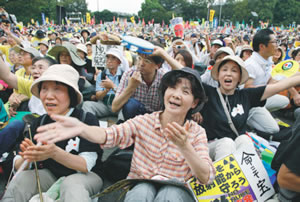 9월 19일, 도쿄 메이지공원에서 <잘가라 원전, 5만명집회>가 열렸습니다. 르포라이터 가마타 스스무 씨, 소설가 오에 겐자부로 씨, 경제평론가 우치하시 가츠토 씨, 작가 오치아이 게이코 씨 등의 제언으로 열린 것입니다.