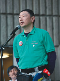 나가노 토우신 의료생협의 의과대학생, 코바야시 테츠유키는 치바현에서 참가했습니다. “우리 지역에 있는 우에다 생협진료소는 19개의 입원침대를 가진 진료소인데, 법인 내의 상근 의사가 2명밖에 없기 때문에, 모두 굉장히 힘듭니다. 이대로 의사부족이 진행되면, 피로에 의한 의료사고도 일어날 수 있습니다. 어떻게든 하지 않으면 안되겠다는 생각으로, 참가했습니다. 앞으로 지역의 여러분들과 협력해 운동해나가고자 합니다. “ 라고 자신의 마음을 이야기했습니다.