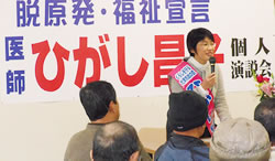 2カ月あまりのたたかいでしたが、「脱原発」「福祉都市へ」の政策を掲げ、東医師の元気と朗らかさで仲間を盛り上げながらがんばることができました。