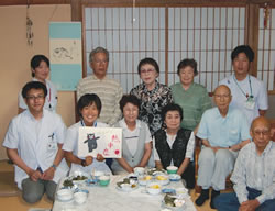 その後は、友の会員のご自慢の料理を食べながら楽しく歓談。参加者からは「こんなかわいい方が先生になってくれたら、診察に行くだけで元気になれる」 「九州大学の先生と聞いたらお高いイメージだったけれど、こんなに高齢者のことを思ってくれる先生もいるんですね」など、感動の声がたくさんあがっていま した。