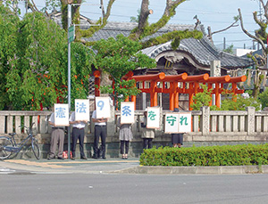 当院から歩いて五分のところにある神社の前も定点の一つです。この日は一二人が参加しました。