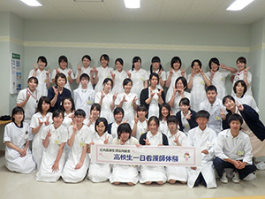 六月九日、今年度初の「高校生一日看護師体験」を開催しました。過去最高の七六人の応募があり、「受け入れを断らない」方針のもと企画内容を検討して、法人内の二病院で受け入れました。