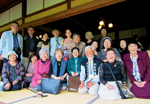 嘉飯コスモス支部の瓜生さんがガイド役になり、ユーモアたっぷりに邸内を案内してくださいました。二階の白蓮さんのお部屋では、すてきな調度品と庭の眺 めにうっとり。帰りには老舗「千鳥饅頭総本舗」で、本家所蔵の歴史的美術品などのお宝を拝見しました。「筑豊の文化レベルの高さをあらためて感じました。 行く先々で本当に心がワクワクしてフワーッと膨らむのを感じました」と参加者から感想をいただきました。