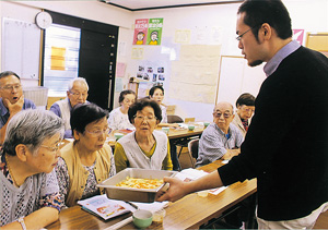 今回の特色は、栄養士と調理師を講師に「目の前で調理が見られる」こと。栄養士の「やってみましょうよ」のひとことで実現した班会です。